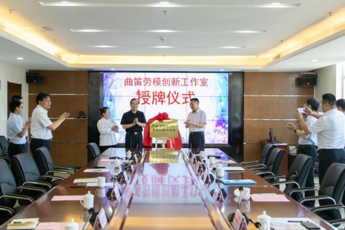 7月8日在城市學(xué)院,李香軍與學(xué)院黨委書記宋寧共同為“勞模(高技能人才)曲笛創(chuàng)新工作室”揭牌。曲笛作為城市學(xué)院的優(yōu)秀年輕教師代表,在世界技能大賽上屢創(chuàng)佳績,曾受到國務(wù)院總理李克強,山東省委副書記、省長龔正分別接見。