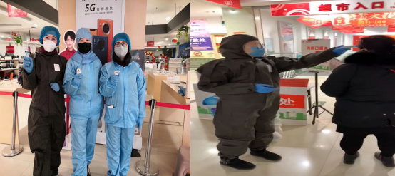 突擊隊(duì)成員韓百茹為顧客測(cè)溫的舉動(dòng)被有心顧客拍攝,青春靚麗的正能量形象,感染了無(wú)數(shù)顧客。同時(shí),隊(duì)員們切實(shí)將防范工作做到實(shí)處、細(xì)處,專業(yè)的防護(hù)裝備,保護(hù)他人的同時(shí)亦防護(hù)了自身。