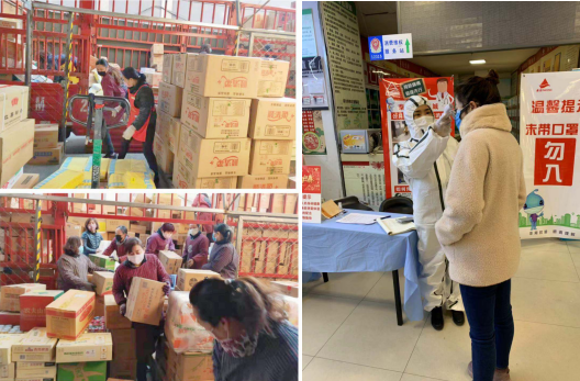 團(tuán)員們迅速組建了志愿者服務(wù)隊(duì),先后成立“卸貨小組”“生鮮幫扶隊(duì)”“款臺(tái)疏通隊(duì)”“疫情控制小組”四支隊(duì)伍,有序開展各項(xiàng)志愿服務(wù)工作。在每天的配送車卸貨區(qū),清晨超市生鮮上貨區(qū),繁忙的超市款臺(tái)前,各個(gè)需要消殺的通道內(nèi),入口體溫測(cè)量處,都能看到團(tuán)員志愿者們的身影。他們始終堅(jiān)守在抗擊疫情的一線,為保障民生、共渡難關(guān)發(fā)揮自己的光和熱。