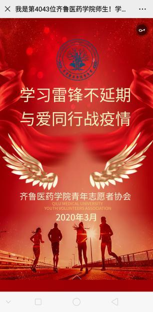 3月1日—5日,“雷鋒月”主題征稿活動收到作品900余份,優(yōu)秀作品將通過“齊魯醫(yī)藥校學生會”微信公眾號公布。來稿緊緊圍繞活動主題,以真實的雷鋒故事感染他人。3月1日—31日,“學雷鋒,隨手拍,齊分享”主題照片分享活動收到作品700余份。作品以宣傳抗疫人員無私奉獻的優(yōu)秀品質(zhì)為主線,捕捉感人瞬間,提高思想境界。3月5日—31日,“學習雷鋒,共克時艱”線上接力活動以轉發(fā)微信接力卡的形式,展現(xiàn)志愿者在抗疫一線所作貢獻,引發(fā)學生強烈共鳴,共有4000余人加入到接力中。