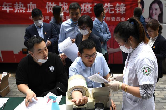 5月14日9點,省血液中心的愛心獻血車駛進山師東路4號院內。為避免人員聚集,預防獻血過程中可能出現的交叉感染,前來獻血的黨員干部職工在醫務人員的引導下,佩戴口罩、填表登記、測溫測壓、檢查血型、抽取血液,現場秩序井然、有條不紊。