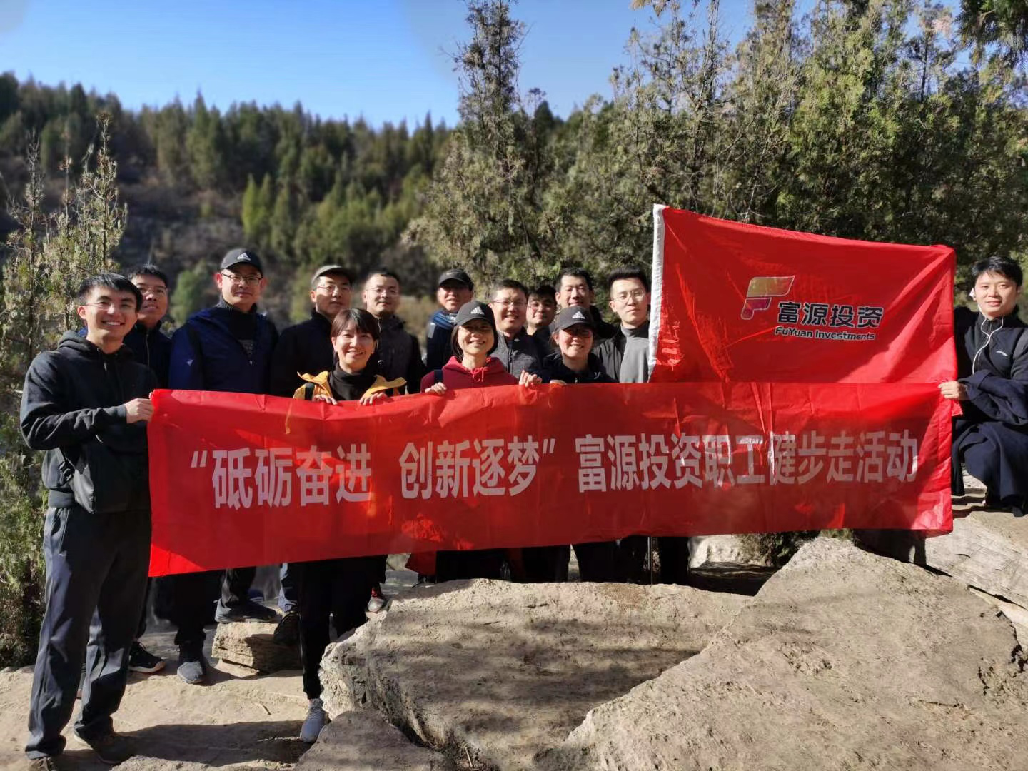 本次活動地點在濟南龍洞風(fēng)景區(qū)。都市圈內(nèi),穿越幾公里,徒步行走在如畫的風(fēng)景中,滿山紅葉層林盡染,如夢如幻。團隊穿過一條長長的峽谷,經(jīng)過一片幽靜的樹林,腳下徒步穿過崎嶇的山路。全體員工穿越龍洞,順利完成了徒步活動。一路上,大家追隨著富源投資的旗幟不言放棄,精神抖擻,攜手前進,充分發(fā)揚了團結(jié)協(xié)作、頑強拼搏的精神。