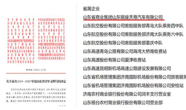 近日,“2019—2020年度山東省青年文明號”集體評選結果揭曉,山東銀座天尊汽車有限公司(以下簡稱銀座天尊)榜上有名。