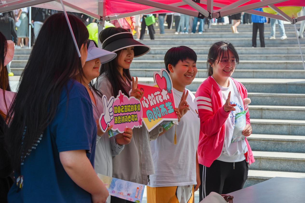 本次活動(dòng)采取“搶票”預(yù)約制,共吸引了上千名同學(xué)參與,現(xiàn)場(chǎng)人頭攢動(dòng),歡聲笑語此起彼伏,學(xué)生們?cè)诔两襟w驗(yàn)活動(dòng)中,感受生命的美好與能量。在“10米陽光”攤位,千人共同繪制10米“陽光”長(zhǎng)卷,用色彩描繪出內(nèi)心溫暖又堅(jiān)定的力量。
