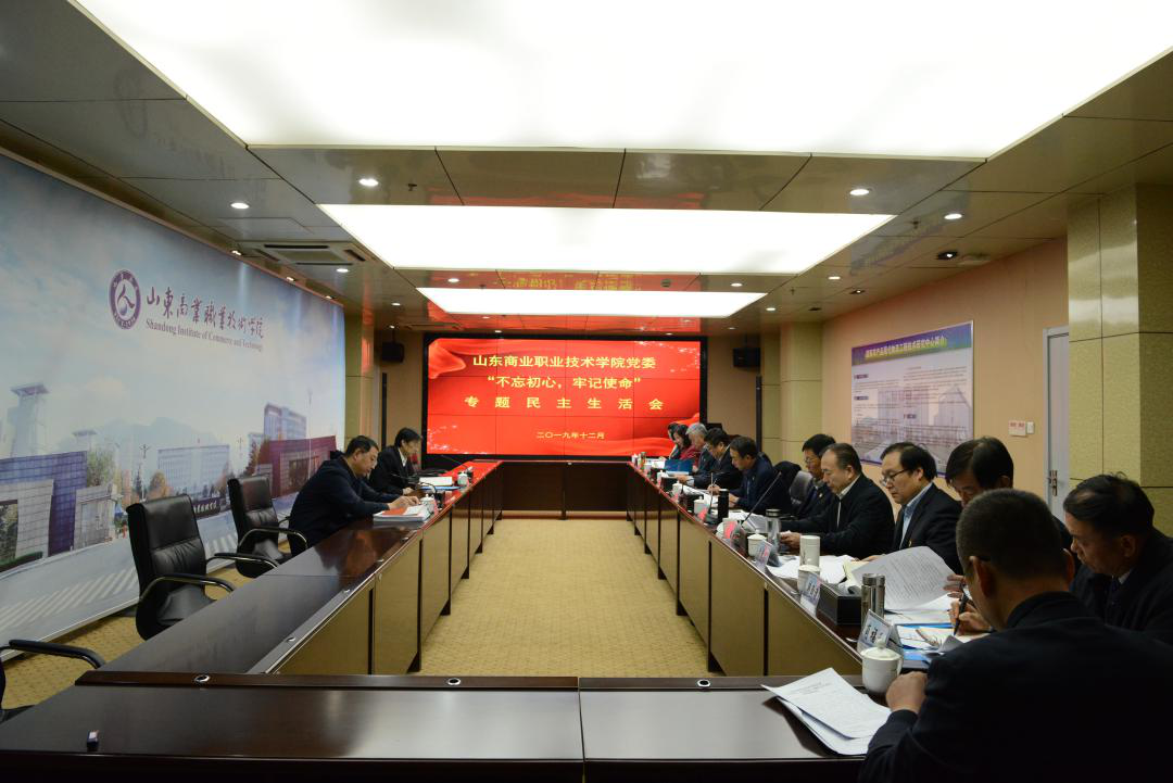 根據中央“不忘初心、牢記使命”主題教育部署和省委要求,按照省商業集團有限公司(以下簡稱魯商集團)黨委工作安排,山東商業職業技術學院(以下簡稱山東商院)黨委12月12日召開“不忘初心、牢記使命”專題民主生活會。省委常委、宣傳部部長關志鷗,省委第三巡回督導組組長、省管企業監事會主席楊少軍,魯商集團主題教育領導小組組長、魯商集團黨委書記、董事長兼省文旅集團黨委書記、董事長高洪雷到會指導。魯商集團主題教育巡回指導組組長、魯商集團黨委常委、組織人力資源部部長李林出席。山東商院黨委書記張志東主持會議。