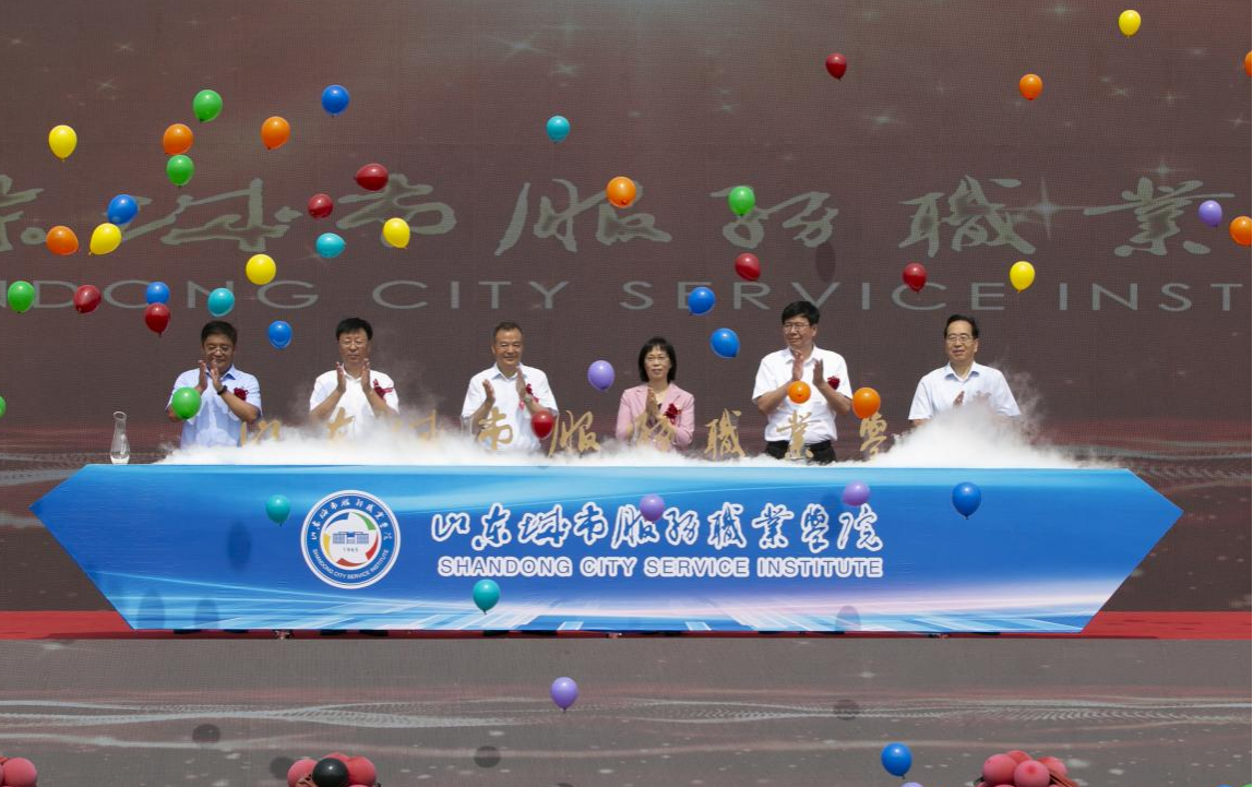 6月27日,山東城市服務職業(yè)學院舉行揭牌儀式。省教育廳二級巡視員趙立輝出席揭牌儀式并宣讀《山東省人民政府關于同意設立山東城市服務職業(yè)學院的批復》。魯商集團黨委常委、董事、組織人力資源部部長李林,煙臺市政協(xié)副主席、工商聯(lián)主席李京波,市委教育工委常務副書記、市教育局黨組書記、局長郝慎強出席揭牌儀式。