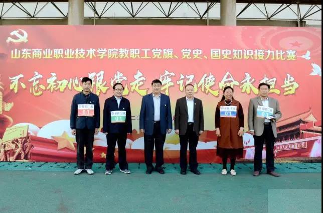 11月5日,山東商業(yè)職業(yè)技術(shù)學(xué)院舉行“不忘初心跟黨走,牢記使命永擔(dān)當(dāng)” 黨旗、黨史國(guó)史知識(shí)接力比賽,學(xué)院領(lǐng)導(dǎo)班子成員參加開(kāi)幕式,工會(huì)主席肖福和主持。