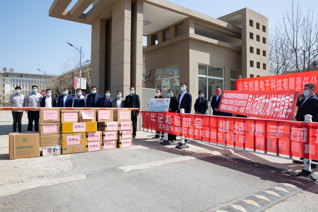 煙臺民建高新區(qū)總支一支部主委、山東創(chuàng)惠電子科技有限公司董事長高廣順代表民建煙臺高新區(qū)總支一支部向省城市學(xué)院捐贈防疫物資。
