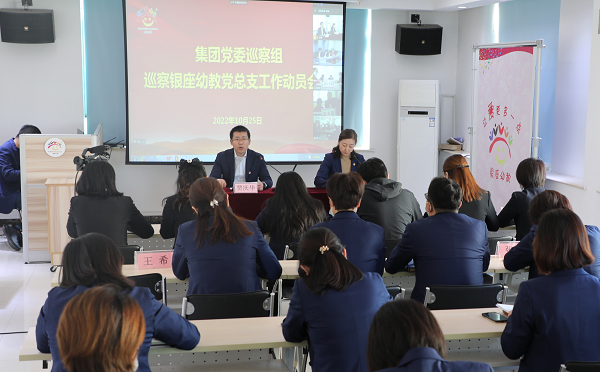 10月25日,魯商集團黨委巡察組召開巡察銀座幼教黨總支工作動員會。集團黨委巡察辦主任、巡察組組長賈慶華作動員講話,銀座幼教黨總支書記、董事長袁霞主持會議并作表態發言。