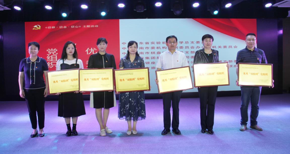 近日,在濟南市歷下區(qū)千佛山街道棋盤街社區(qū)黨委及轄區(qū)所屬10家單位共同組織開展的“信仰·信念·信心”七一主題黨日活動暨表彰大會上,銀座集團黨委、銀座商城黨支部榮獲社區(qū)優(yōu)秀“雙報到”黨組織稱號。