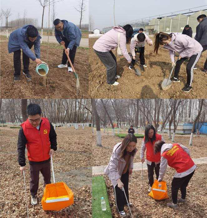 在植樹活動現場,大家干勁十足、分工協作,挖坑、種樹、填土、踏實、澆水,配合默契。經過共同努力,小樹苗在陽光下迎風而立,為春天再添新綠。在學雷鋒活動中,大家發揚不怕苦不怕累的精神,用清潔工具清理園區垃圾,細致打掃每個角落,使園區環境煥然一新。