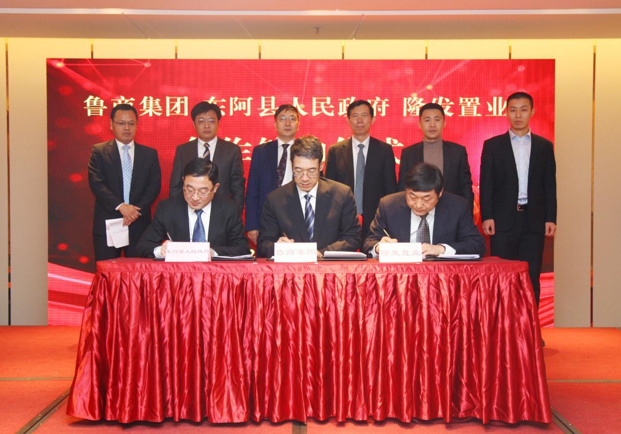 2月12日上午,魯商集團與東阿縣人民政府、東阿縣隆發置業有限公司在濟南舉行合作簽約儀式,三方將共同開發建設東阿縣文化旅游綜合體項目。東阿縣人民政府縣長馬廣朋、常務副縣長江紹華、魯商集團總經理凌沛學、黨委副書記劉守亮、副總經理趙西亮以及東阿縣隆發置業有限公司總經理王魯林等出席了簽約儀式。