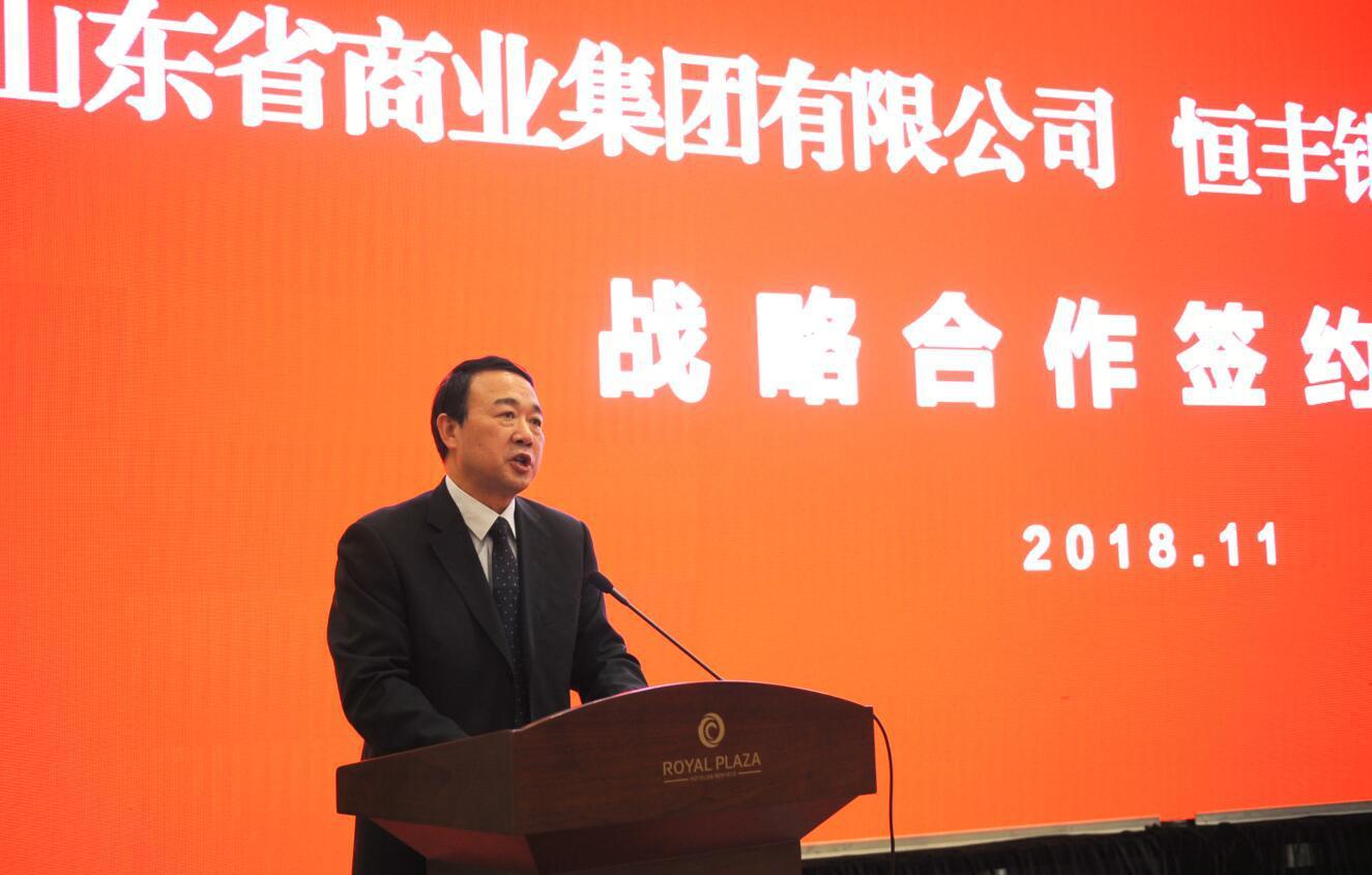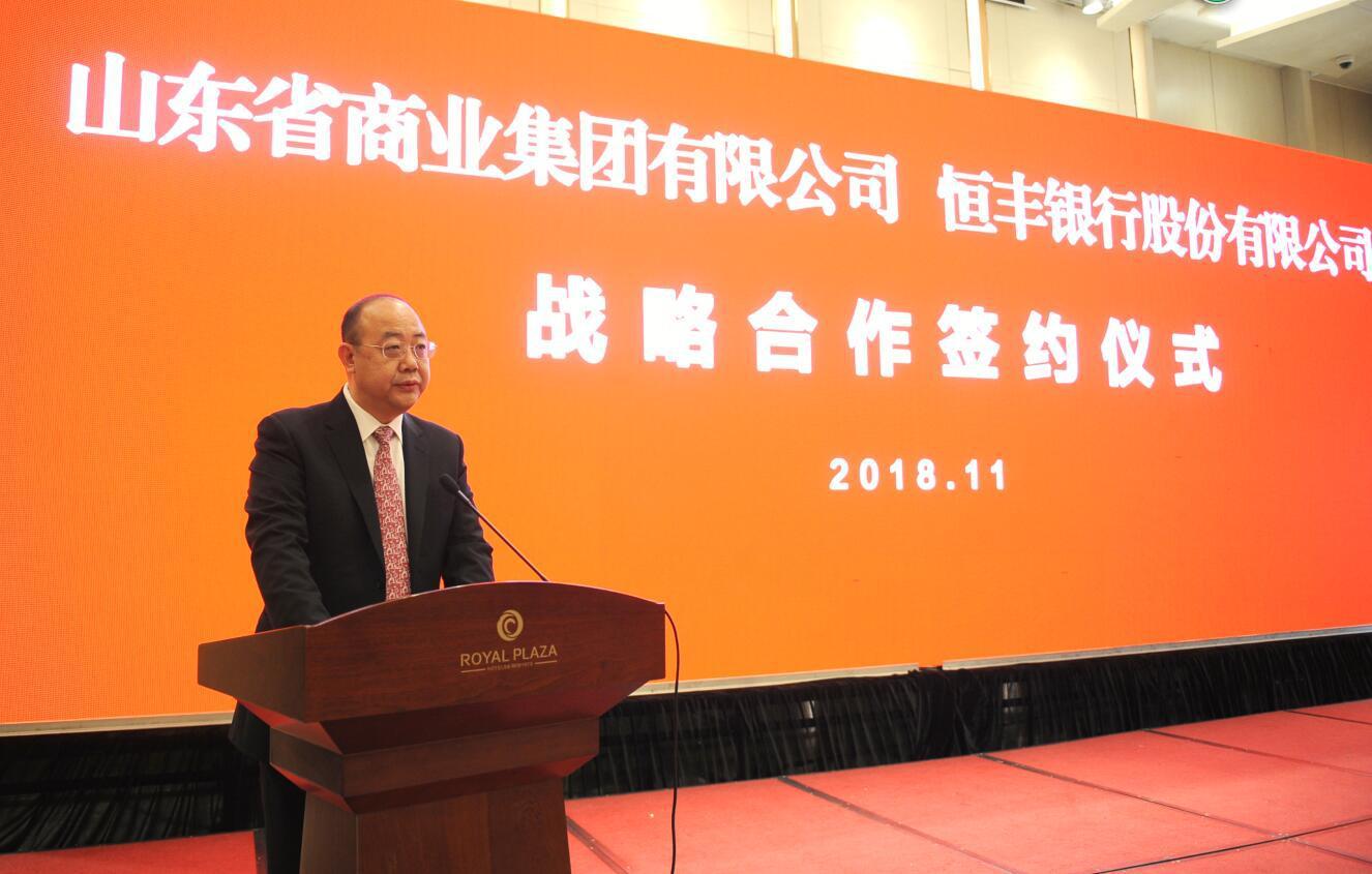 高洪雷對恒豐銀行多年來支持魯商集團發展表示感謝。他說,魯商集團是1992年底由省商業廳整建制改建而成的國有企業,現已成長為以智慧零售業、文化旅游業、綜合地產業、醫藥康養業、現代金融業為主業的多元化企業。集團現擁有兩家上市公司、四所高校、三個全國馳名商標、六個國家級研發平臺、304戶企業,從業員工20萬人。2018年前三季度,集團實現營業收入同比增長6.67%,實現報表利潤同比增長30.75%。