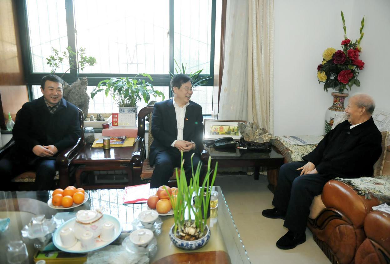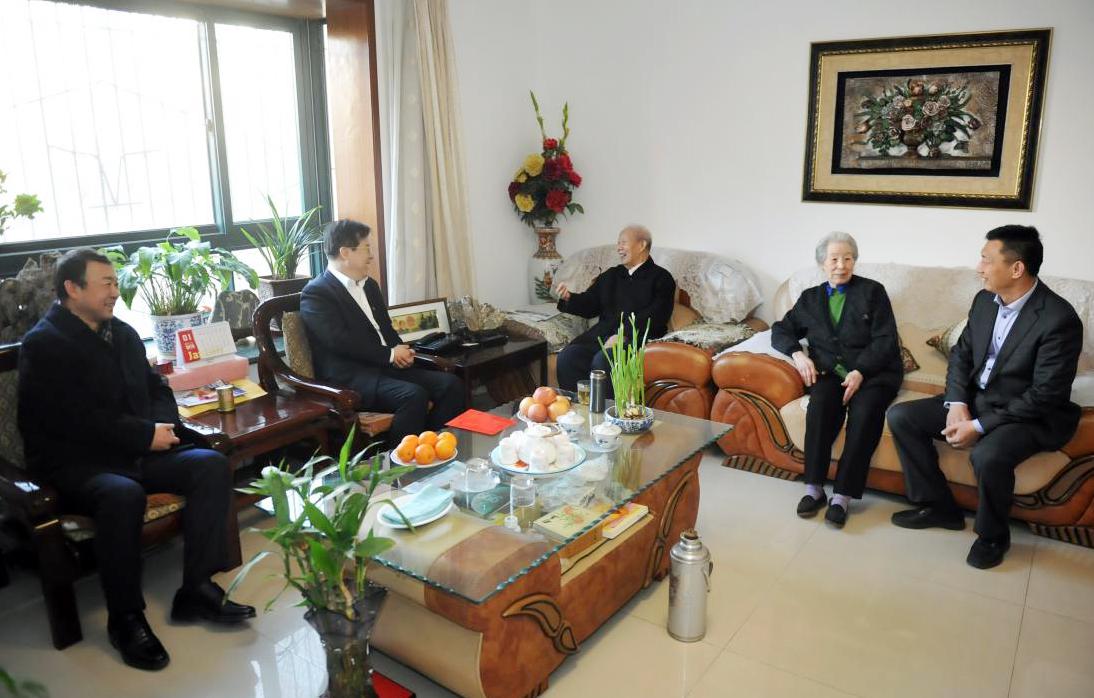來(lái)到程俊德老人家中,張斌關(guān)切地詢問(wèn)老兩口的身體和生活情況,感謝他們做出的貢獻(xiàn),并認(rèn)真聽(tīng)取老人的意見(jiàn)和建議。張斌說(shuō),根據(jù)省委、省政府安排,他代表省國(guó)資委走訪看望老同志。老同志是黨和人民事業(yè)的寶貴財(cái)富,山東國(guó)資的工作離不開(kāi)老同志們的支持。隨后張斌介紹了2018年省屬企業(yè)運(yùn)行發(fā)展情況:去年實(shí)現(xiàn)營(yíng)業(yè)收入12707億元,實(shí)現(xiàn)利潤(rùn)總額660億元,同比分別增長(zhǎng)14%和40%;資產(chǎn)總額達(dá)到29303億元,主要經(jīng)營(yíng)指標(biāo)創(chuàng)歷史最好水平。高洪雷也介紹了省商業(yè)集團(tuán)2018年的發(fā)展情況:主要經(jīng)濟(jì)指標(biāo)明顯好轉(zhuǎn),實(shí)現(xiàn)了宏觀經(jīng)濟(jì)進(jìn)入新常態(tài)以來(lái)的最大增幅。兩人均表示,好成績(jī)?cè)从诶贤緜兇蛳碌暮没A(chǔ),也得益于老同志們對(duì)工作的支持。