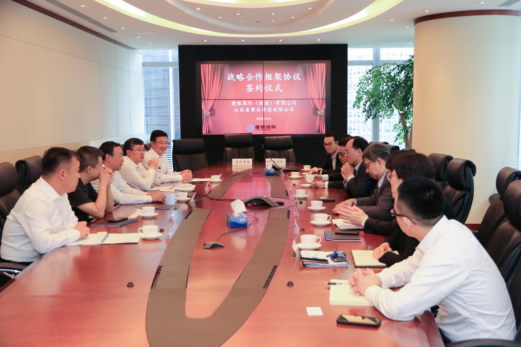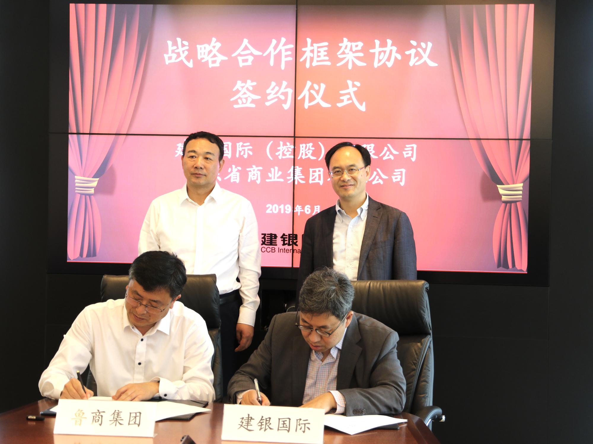 會談后,在高洪雷、劉守建共同見證下,魯商集團投資管理部部長姜國棟與建銀國際金融有限公司總經理李紹明代表雙方簽署戰略合作框架協議。根據協議,雙方將在證券經紀與投資咨詢、債權融資、戰投引進、資產管理、聯合投資以及其他金融業務等方面開展合作。