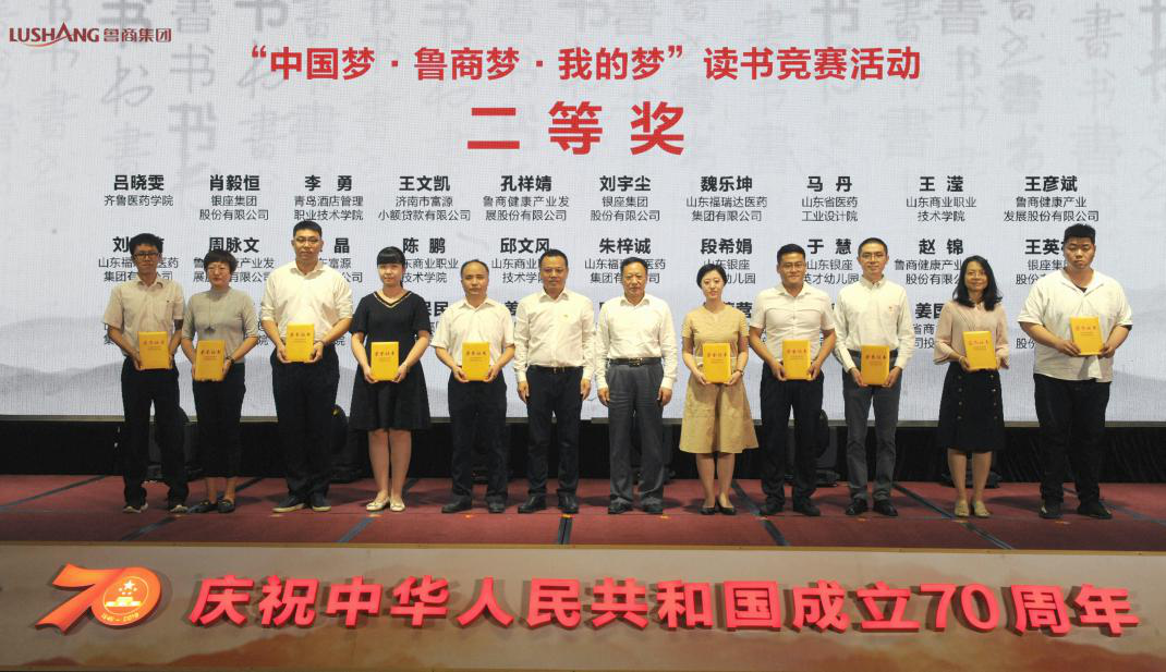 用書香守候初心,品讀中追尋夢想。“中國夢·魯商夢·我的夢”讀書競賽活動共評選出一等獎20名,二等獎30名,三等獎60名,優(yōu)秀獎200名,優(yōu)秀組織獎5家單位。頒獎典禮上,高洪雷、凌沛學(xué)為銀座集團(tuán)、魯商發(fā)展、福瑞達(dá)醫(yī)藥集團(tuán)、銀座旅游集團(tuán)、山東商院等5家單位頒發(fā)優(yōu)秀組織獎;姬德君,陳文東,周尊考,劉守亮,魯商集團(tuán)黨委常委、紀(jì)委書記黎京庭,黨委常委、工會主席李香軍,黨委常委、組織人力資源部部長李林,副總經(jīng)理李彥勇為獲獎代表頒獎。