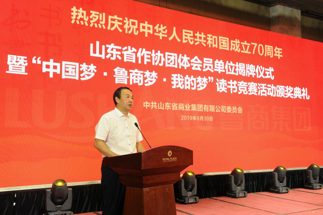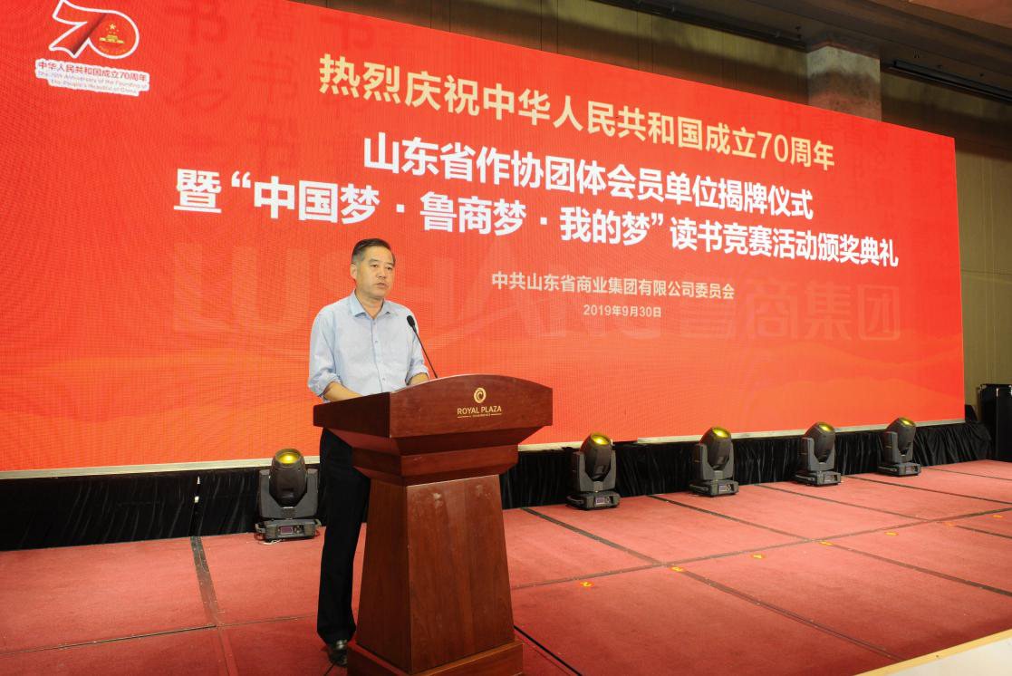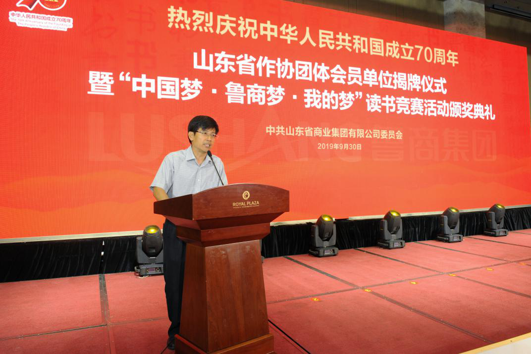 描繪偉大成就,書寫卓越風(fēng)華。新中國成立70周年之際,9月30日,省商業(yè)集團(tuán)有限公司(以下簡稱魯商集團(tuán))在濟(jì)南舉行山東省作家協(xié)會(以下簡稱省作協(xié))團(tuán)體會員單位揭牌儀式暨“中國夢·魯商夢·我的夢”讀書競賽活動頒獎典禮。