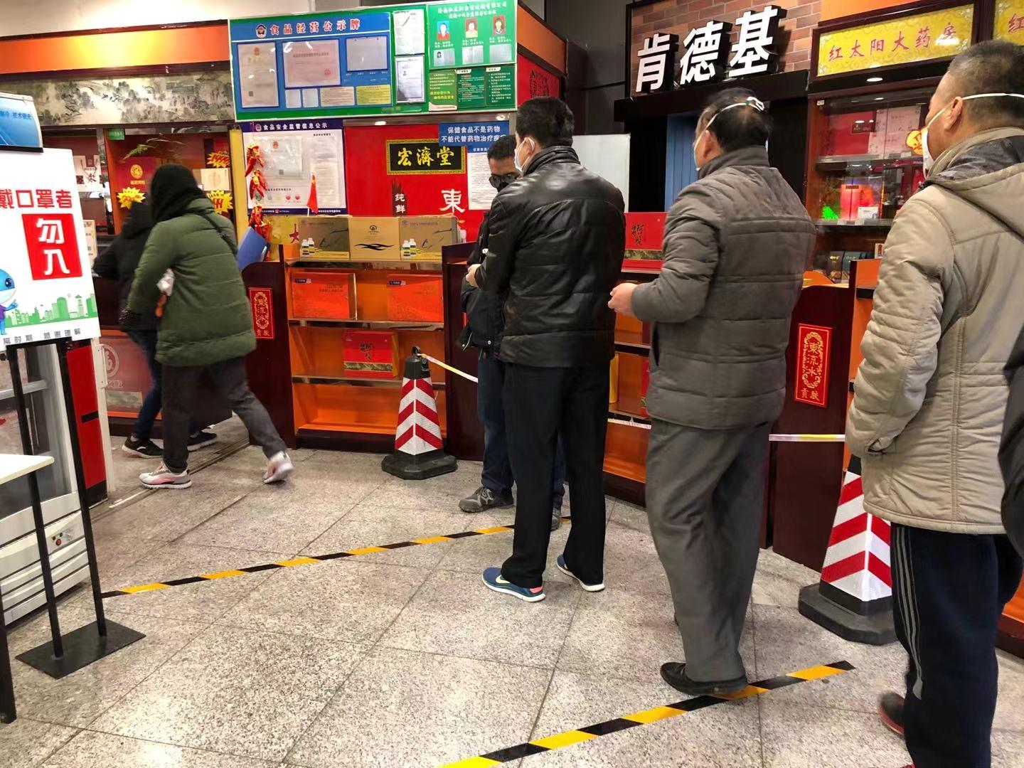 在銀座花園店和玉函店,暗訪組主要察看了顧客進入超市前的預(yù)先防護工作,并對員工個人尤其是收銀員的防護工作提出要求。暗訪組指出,在客流高峰期,人流量大、結(jié)算排隊時間長,扶梯下行口和結(jié)款臺之間容易造成人員聚集,存在一定的風(fēng)險隱患,要安排專人予以引導(dǎo)。超市進口體溫測量處設(shè)置了人員間隔線,但是遵守不到位,要及時對顧客進行提示。