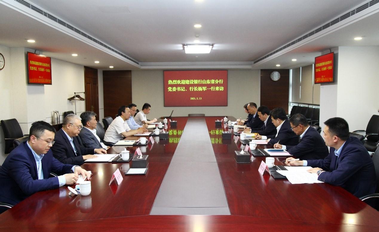 5月13日,魯商集團黨委書記、董事長兼國欣文旅董事長高洪雷,在濟南會見來訪的中國建設銀行(以下簡稱建設銀行)山東省分行黨委書記、行長楊軍一行,雙方就相關項目合作進行座談交流。魯商集團黨委常委、總審計師、工會主席劉德華,副總經理張志強,建設銀行山東省分行黨委委員、副行長、濟南分行行長劉春龍出席會議。