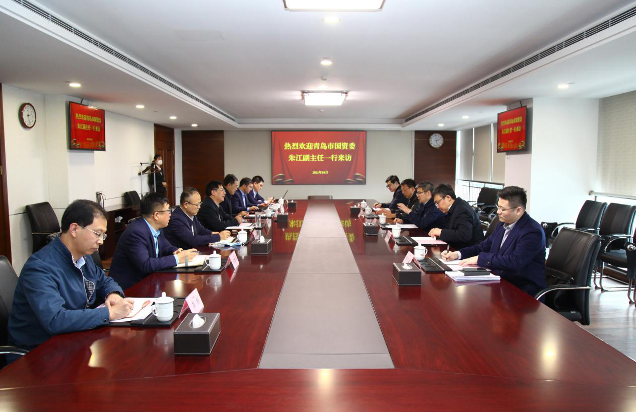 10月19日,魯商集團黨委副書記、總經理郭訓成,在濟南會見來訪的青島市國資委副主任、黨委委員朱江一行。集團黨委委員、副總經理趙西亮陪同。
