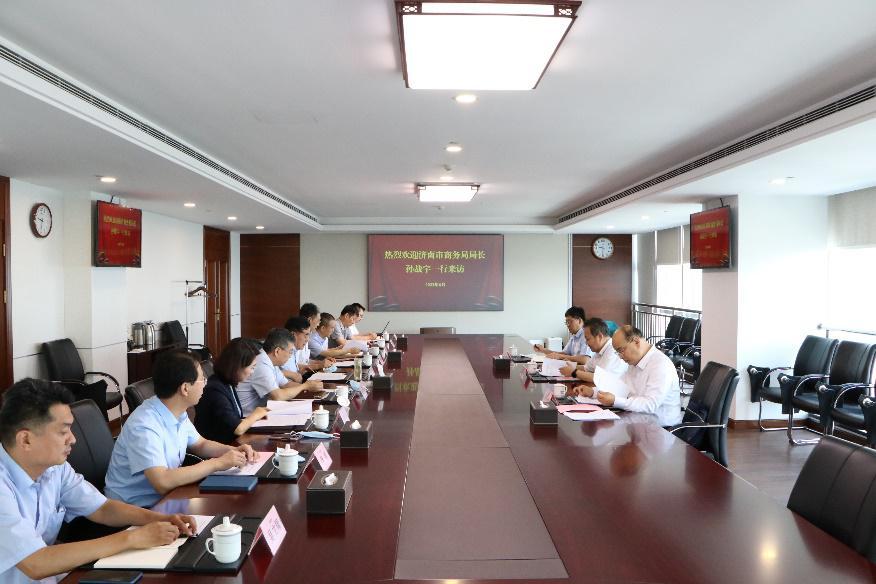 6月24日,濟(jì)南市商務(wù)局黨組書記、局長孫戰(zhàn)宇一行到魯商集團(tuán)調(diào)研駐濟(jì)省屬企業(yè)座談會(huì)召開以來有關(guān)工作進(jìn)展情況,集團(tuán)黨委副書記、總經(jīng)理郭訓(xùn)成,副總經(jīng)理趙西亮、張建軍,濟(jì)南市商務(wù)局黨組成員、副局長滕志超出席活動(dòng)。