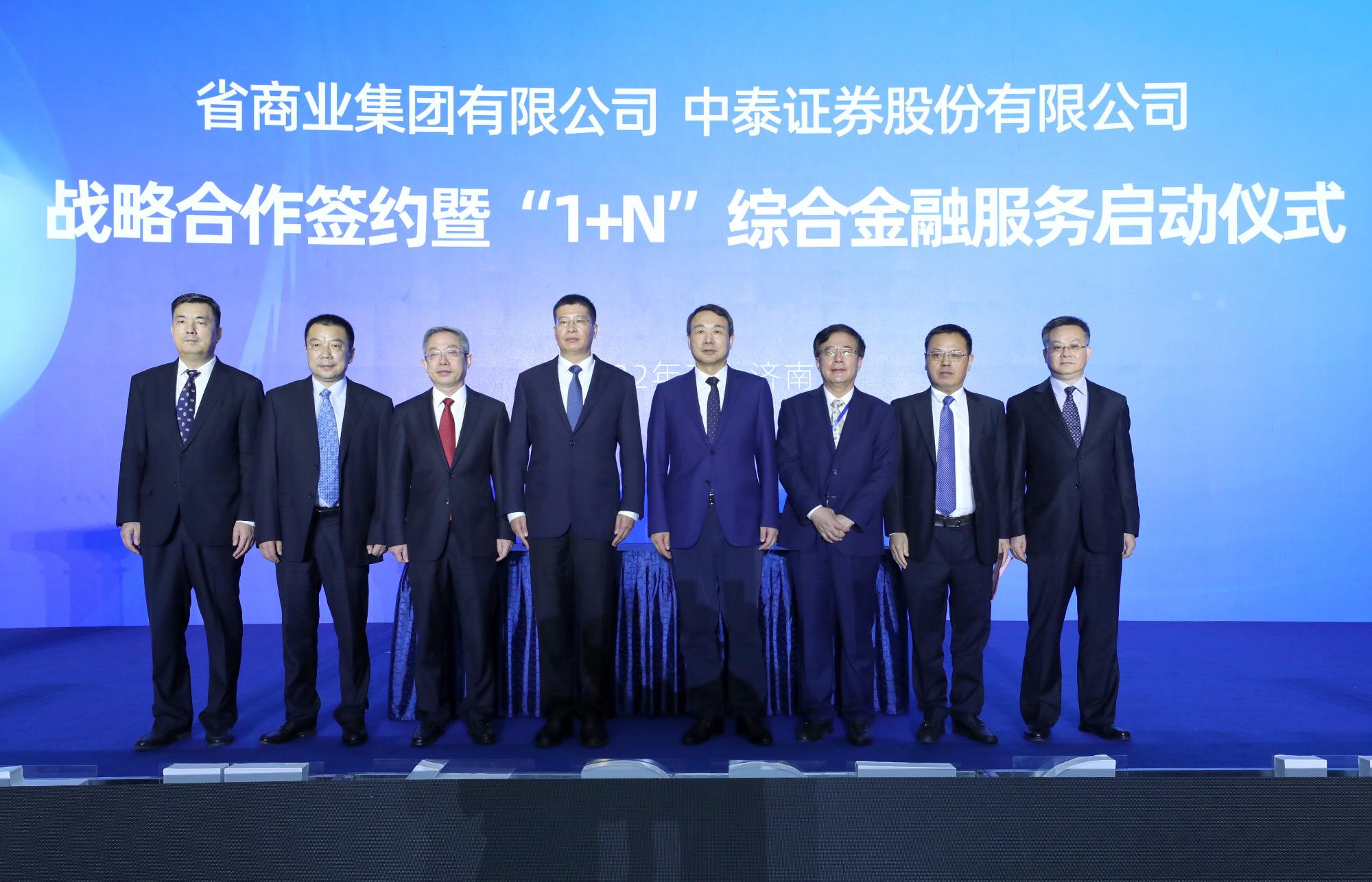 7月8日,魯商集團(tuán)與中泰證券戰(zhàn)略合作簽約暨“1+N”綜合金融服務(wù)啟動(dòng)儀式在山東大廈舉行。魯商集團(tuán)黨委書(shū)記、董事長(zhǎng)兼山東文旅集團(tuán)董事長(zhǎng)高洪雷,中泰證券黨委書(shū)記、董事長(zhǎng)李峰,魯商集團(tuán)黨委副書(shū)記、總經(jīng)理郭訓(xùn)成,黨委副書(shū)記、董事劉守亮,黨委常委、董事、組織人力資源部部長(zhǎng)李林,黨委常委、紀(jì)委書(shū)記、省監(jiān)委駐集團(tuán)監(jiān)察專(zhuān)員劉天海,黨委常委、董事、總審計(jì)師、工會(huì)主席劉德華,中泰證券黨委副書(shū)記、監(jiān)事會(huì)主席郭永利,副總經(jīng)理、財(cái)務(wù)總監(jiān)袁西存,副總經(jīng)理、中泰期貨黨委書(shū)記、董事長(zhǎng)、首席服務(wù)官鐘金龍出席。