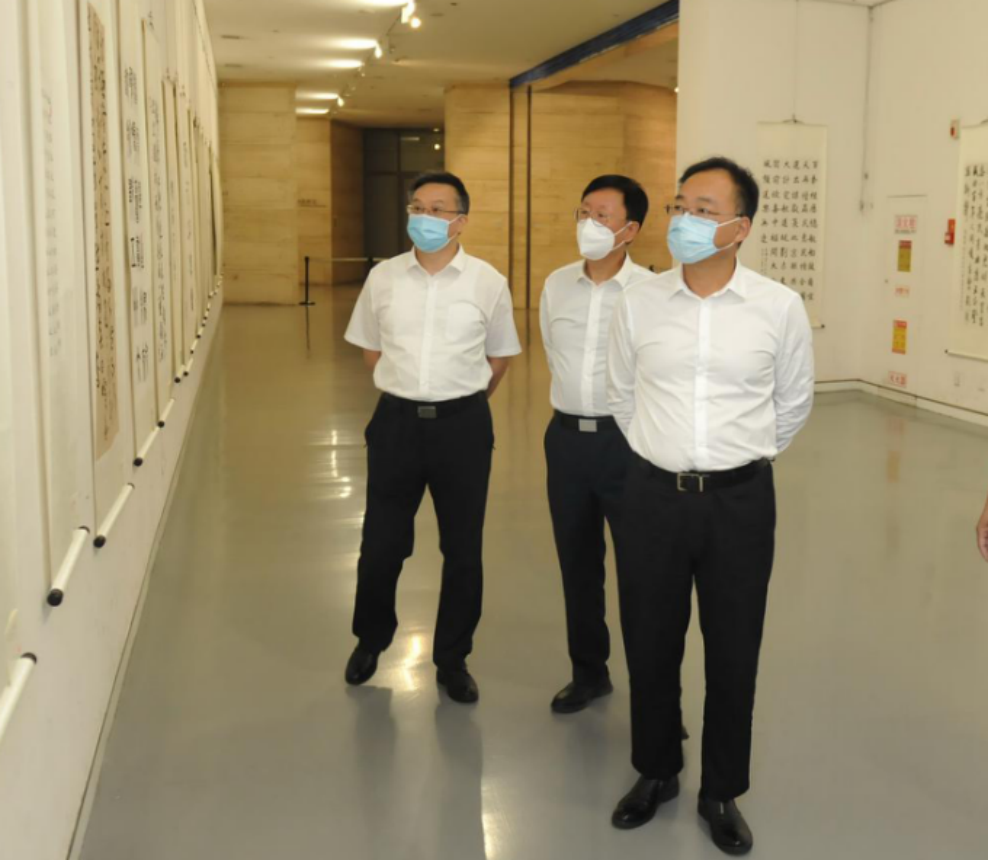 9月20日上午,魯商集團“喜迎二十大 同心向未來”書畫作品展在山東美術館啟幕。集團黨委書記、董事長王緒超,黨委常委、董事、組織人力資源部部長李林,黨委常委、董事、總審計師、工會主席劉德華,省美術家協會副主席李平,理事、副秘書長孫萬靈、樊磊,省書法家協會主席團委員鄒方臣出席并觀展。現場,王緒超與劉德華共同打開書法名家題詞為書畫展啟幕。李林致辭。