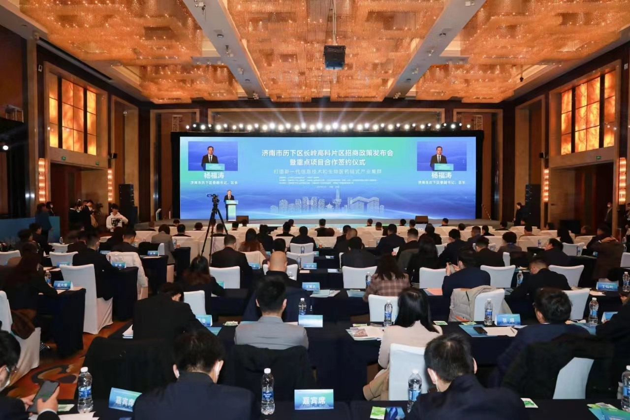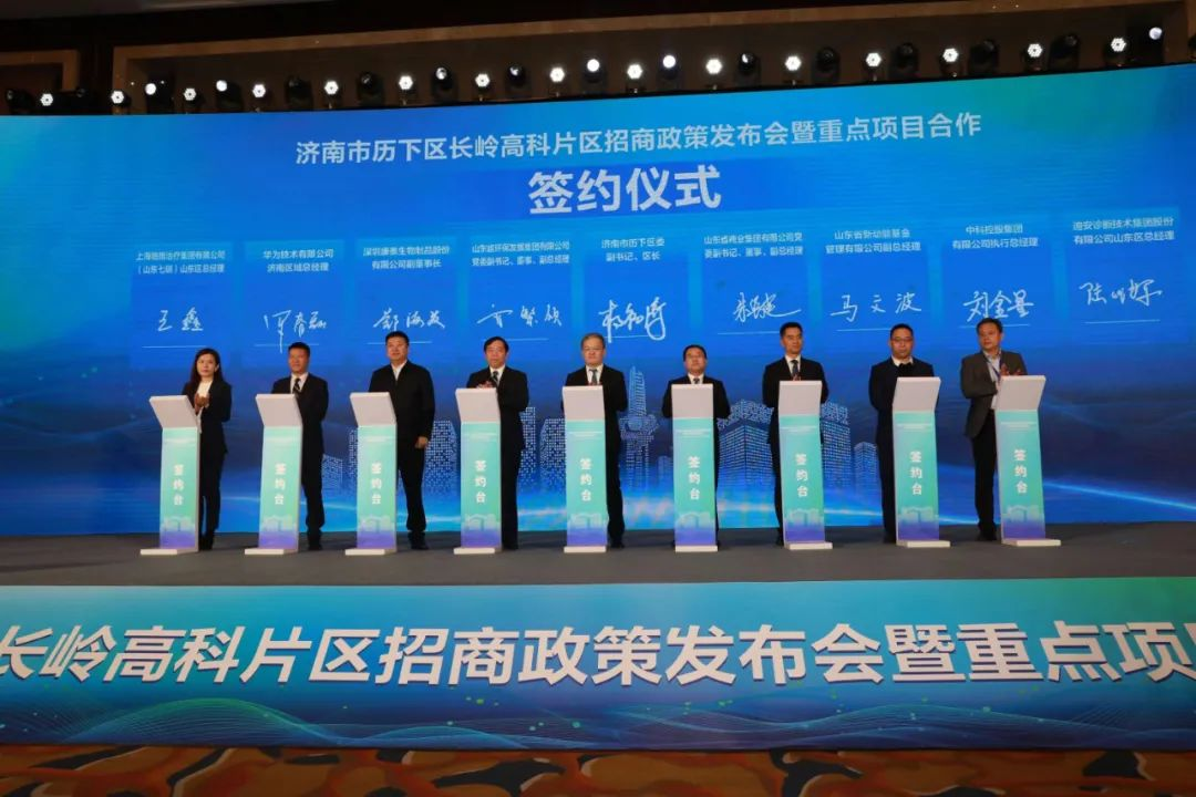 2月15日上午,濟南市歷下區舉辦長嶺高科片區招商政策發布會暨重點項目合作簽約儀式。濟南市委常委、副市長孫斌,省工信廳二級巡視員李永華,魯商集團黨委書記、董事長王緒超等出席活動并共同為長嶺高科片區啟幕。魯商集團黨委副書記、董事、副總經理朱華建,歷下區委副書記、區長楊福濤參加活動。