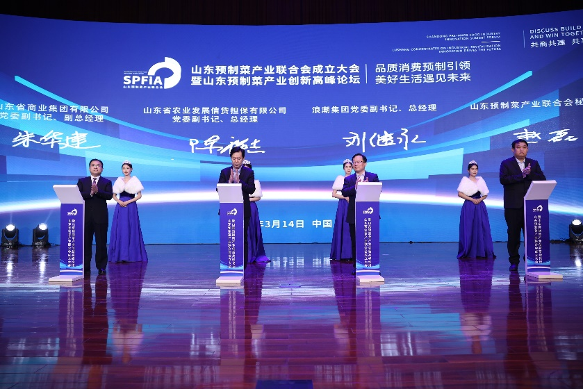3月14日,山東預制菜產業聯合會成立大會暨山東預制菜產業創新高峰論壇在濟南召開。中國工程院院士、食品工程專家朱蓓薇,美國國家科學院院士、北京大學現代農業研究院院長鄧興旺,省農業農村廳黨組成員、省畜牧獸醫局黨組書記、局長于永德,省民政廳省社會組織綜合黨委辦公室主任宋春,魯商集團黨委書記、董事長王緒超,黨委副書記、董事、副總經理朱華建,山東農擔黨委副書記、董事、總經理陳祥志,浪潮集團黨委副書記、總經理劉繼永出席。
