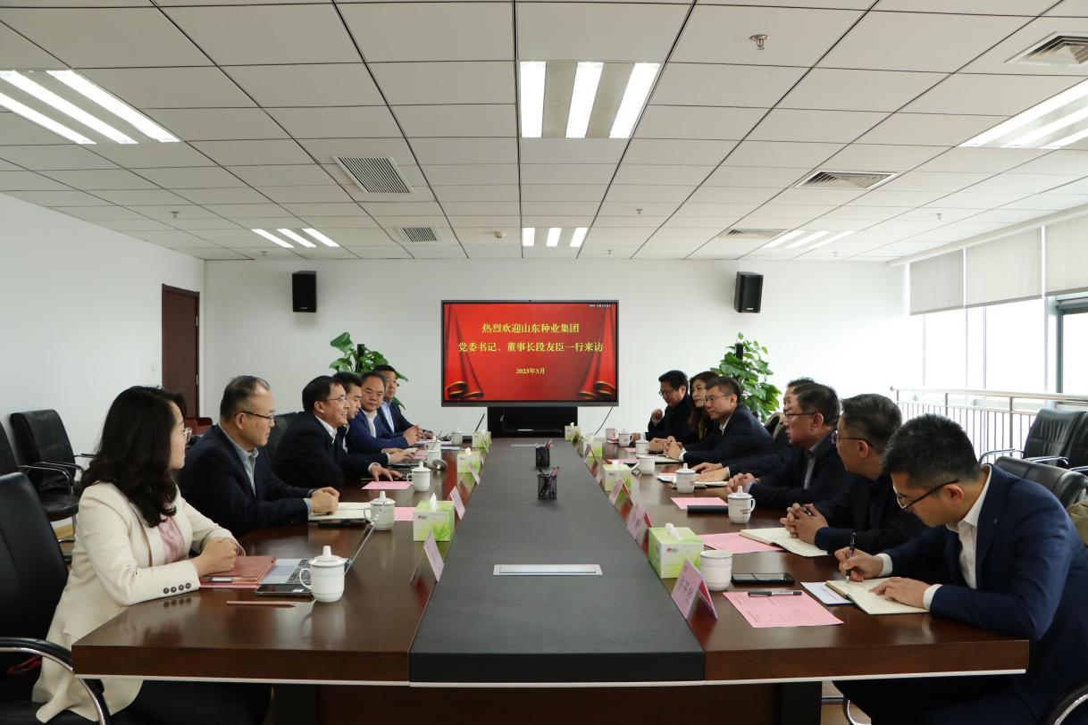 3月24日,山東種業(yè)黨委書記、董事長段友臣到訪魯商集團(tuán),集團(tuán)黨委副書記、董事、副總經(jīng)理朱華建熱情接待并舉行座談。