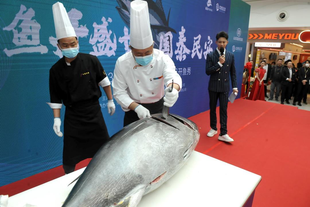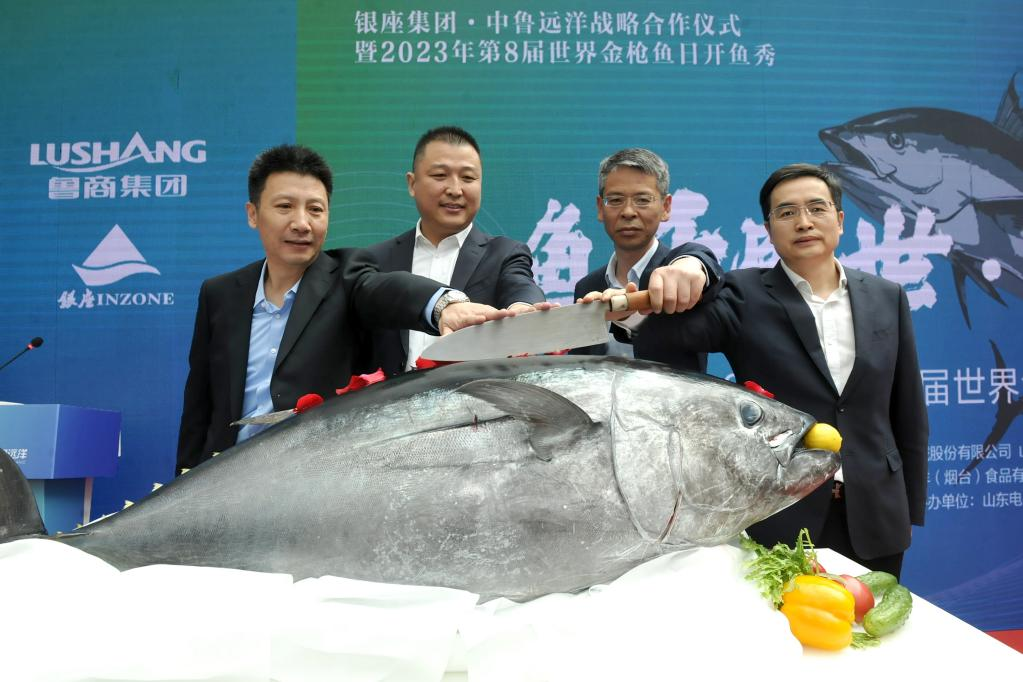 5月2日,“大道魯商?共航遠(yuǎn)洋”銀座集團(tuán)中魯遠(yuǎn)洋戰(zhàn)略合作儀式暨2023年第8屆世界金槍魚日開魚秀在濟(jì)南銀座玉函店舉行。魯商集團(tuán)黨委書記、董事長(zhǎng)王緒超,黨委副書記、董事、副總經(jīng)理朱華建,黨委常委、董事、組織人力資源部部長(zhǎng)李林,山東國投黨委常委盧連興出席。