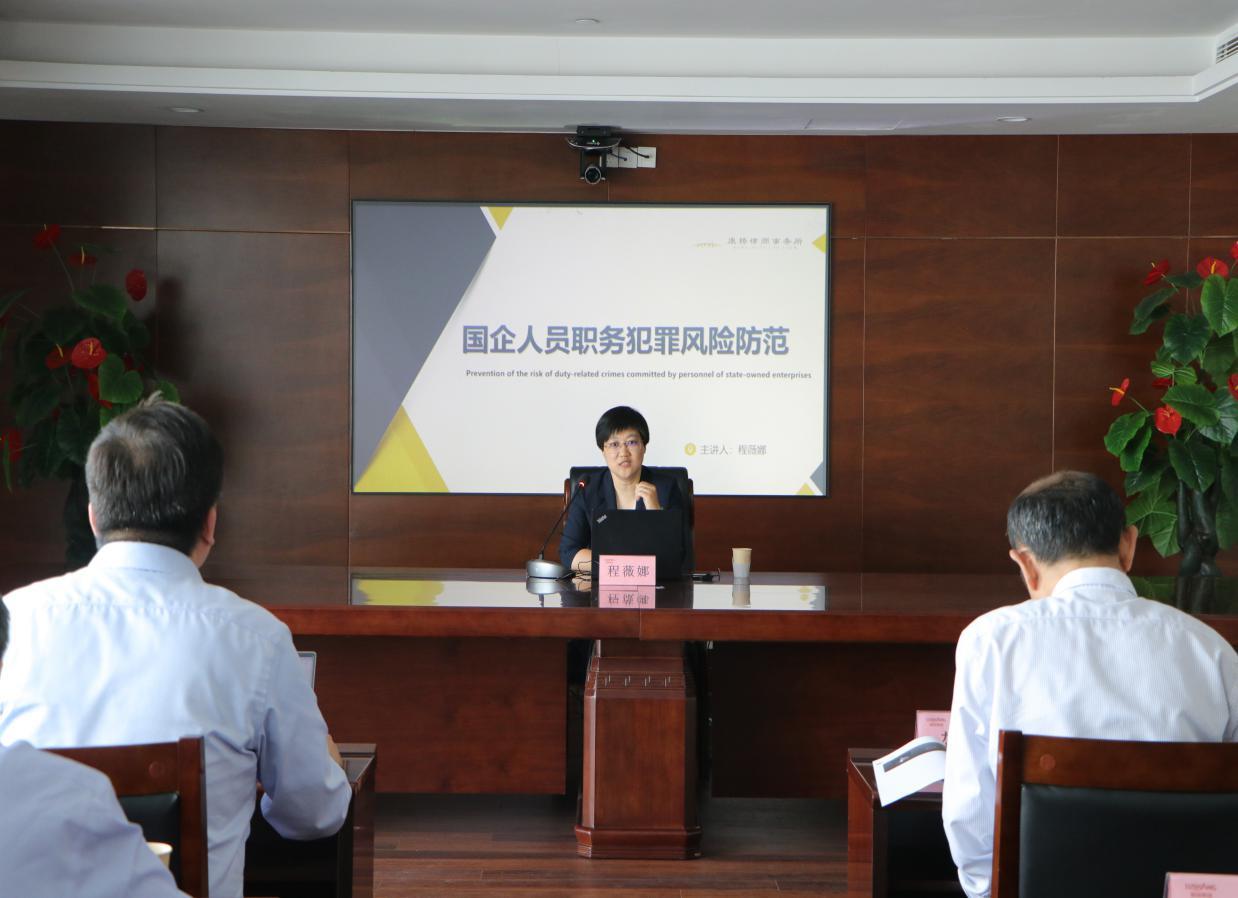 程薇娜律師就防范國企人員職務犯罪的現實要求、國企人員職務犯罪的成因、企業中常見的職務犯罪行為、風險防范舉措等方面,結合法律法規和案例進行了詳細講解。引導廣大干部職工樹立正確的人生觀、價值觀和權力觀,常懷敬畏之心,強化紀律意識,堅守黨紀國法紅線,為防范職務犯罪筑起一道堅固的思想道德防線,共同營造反腐倡廉遵紀守法的企業文化氛圍。