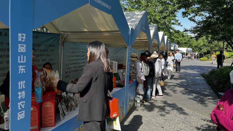 活動(dòng)現(xiàn)場(chǎng)設(shè)置三大特色展區(qū):室內(nèi)展銷區(qū)聚焦糧油、水果等7大品類,展出煙臺(tái)蘋果、三文魚、膠東海參、壽光蔬菜等優(yōu)特農(nóng)產(chǎn)品;沿蘇州河步道打造“山東小吃街”,呈現(xiàn)舌尖上的齊魯風(fēng)味;在推廣中心設(shè)置齊魯農(nóng)超、16市展臺(tái),并展出魯商“一盤貨”及精選外貿(mào)優(yōu)品。