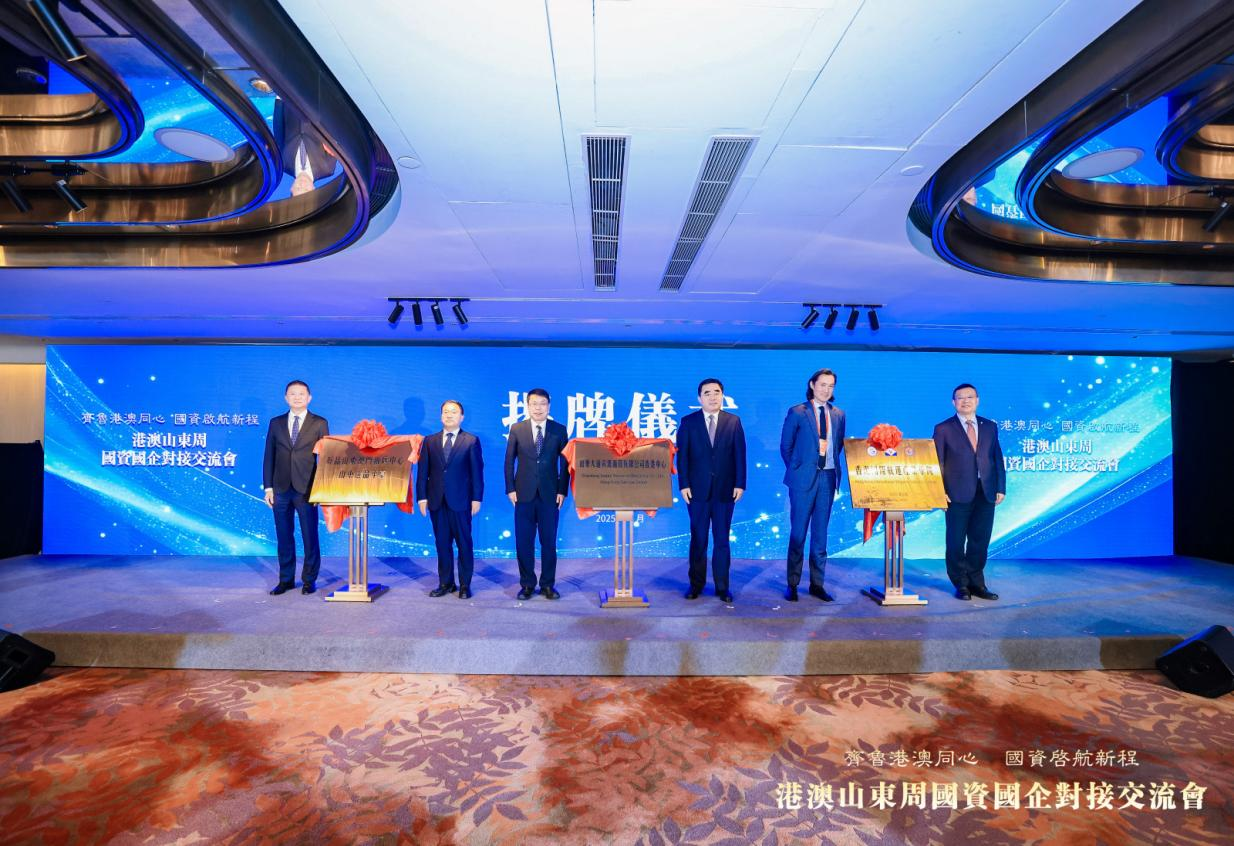 5月21日,“好品山東澳門推廣中心山東選品平臺”在港澳山東周國資國企對接交流會上舉行揭牌儀式。山東省政協(xié)常委、澳門山東社團總會理事長陳捷,魯商集團黨委副書記、董事、總經(jīng)理朱華建共同為平臺揭牌。