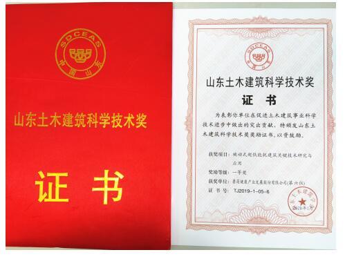 該獎項由山東土木建筑學會于2016年首次設立,獲獎項目代表了省內土木建筑技術領域領先水平。獎項評選要先后通過地方學會推薦、形式審查、專家評審、現場答辯、評審委員會匯評、公示等多個環節。2019年度有88項成果獲獎,其中一等獎18項。