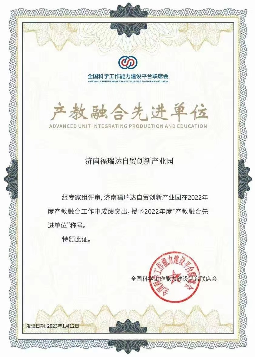 近日,濟(jì)啤集團(tuán)福瑞達(dá)自貿(mào)創(chuàng)新產(chǎn)業(yè)園被全國(guó)科學(xué)工作能力建設(shè)平臺(tái)聯(lián)席會(huì)授予2022年度“產(chǎn)教融合先進(jìn)單位”榮譽(yù)稱號(hào)。