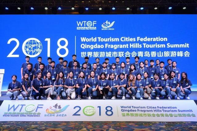 97日至9日,2018世界旅游城市聯合會青島香山旅游峰會在青島舉辦,來自世界59個國家、112個旅游城市的近400名各國代表出席本屆峰會,青島酒店管理職院選派出35名“金海豚”志愿者開展志愿服務工作。