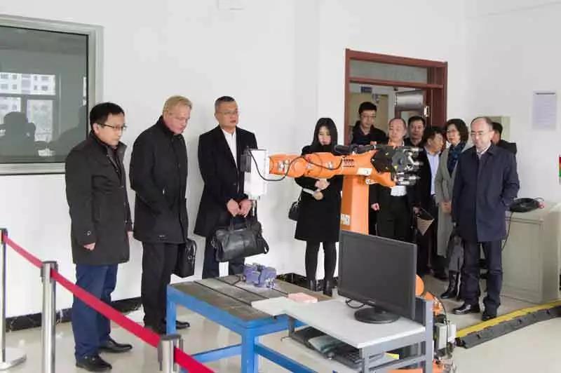 考察團(tuán)一行參觀了機(jī)電工程學(xué)院汽車一體化教學(xué)工作站和工業(yè)機(jī)器人一體化教學(xué)工作站,并在中德萊茵科斯特卓越技師班項(xiàng)目管理中心察看了雙元培養(yǎng)方案和課程標(biāo)準(zhǔn)。考察團(tuán)對(duì)城市學(xué)院的高端定位和取得的成果給予肯定。