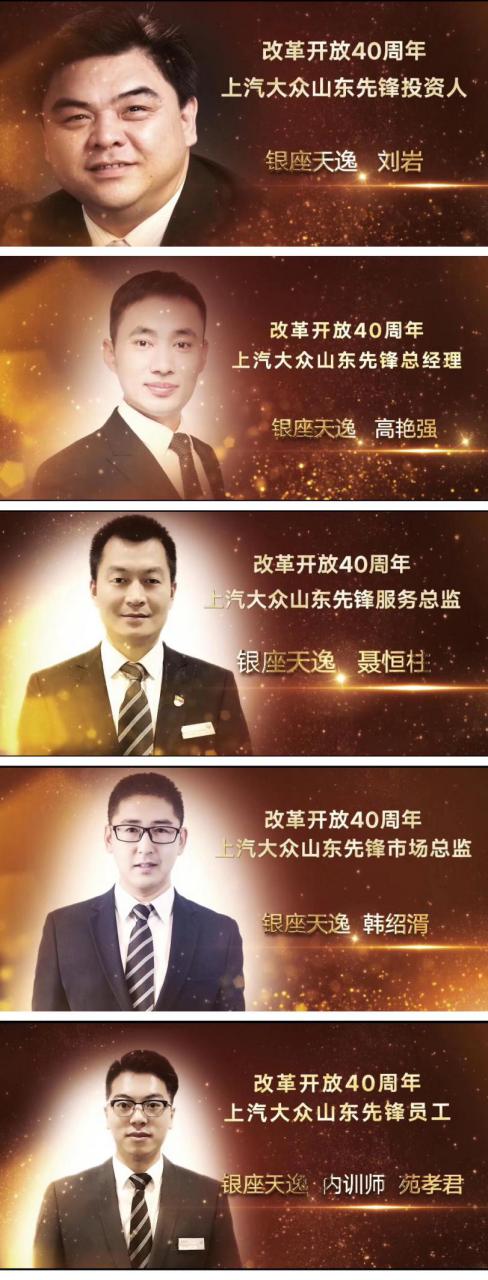 銀座汽車上汽大眾4S店憑借2018年的突出業績和卓越表現,在本次大會上收獲由上汽大眾山東區域頒發的5項先鋒大獎,分別是:先鋒投資人劉巖、先鋒總經理高艷強、先鋒服務總監聶恒柱、先鋒市場總監韓紹湑及先鋒一線員工苑孝君。