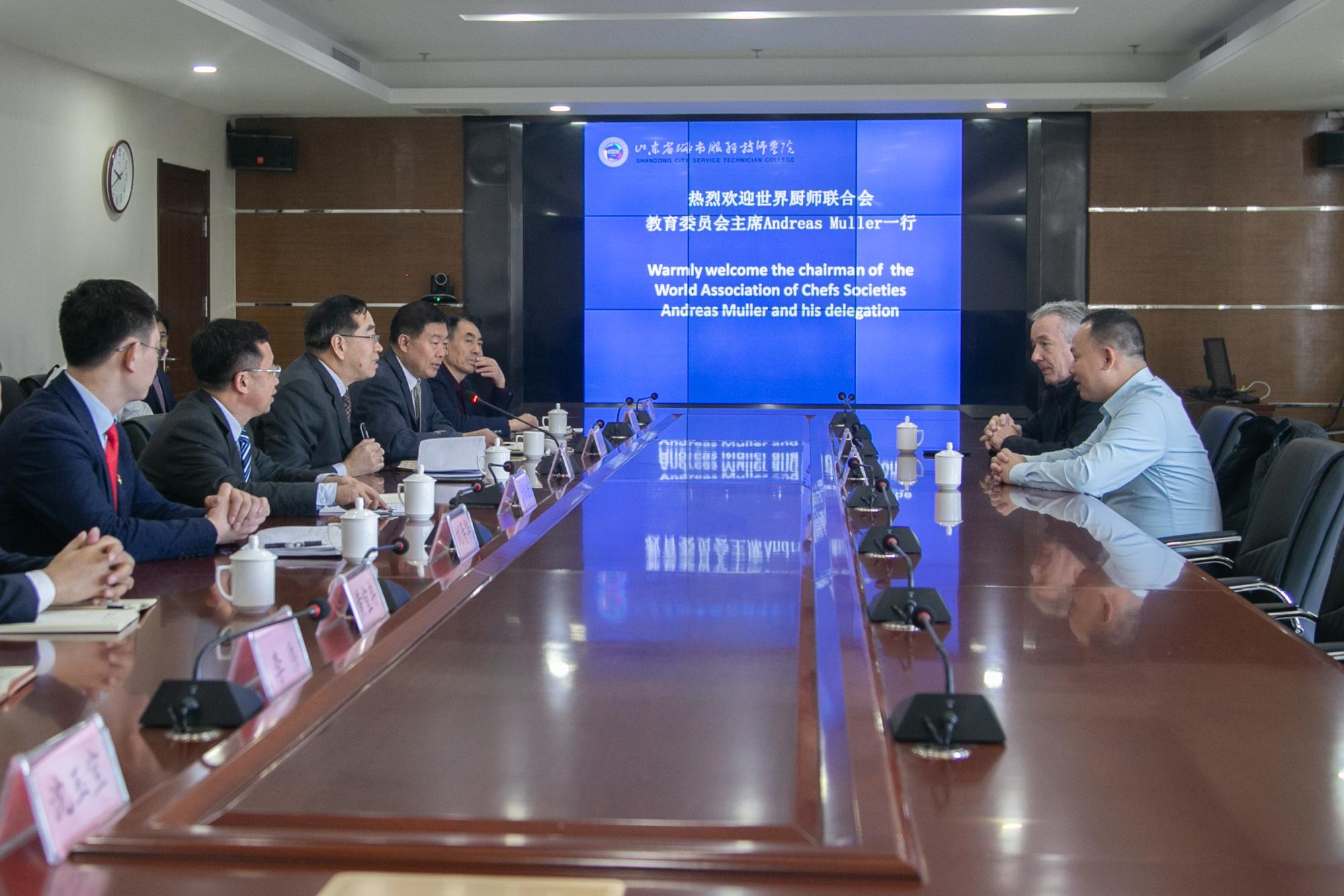 近日,世界廚師聯(lián)合會(huì)教育委員會(huì)主席安德烈亞斯.穆勒、中國西餐大師朱一帆一行到訪城市學(xué)院。學(xué)院黨委書記宋寧、黨委副書記鄒世斌、副院長劉培勝接待。