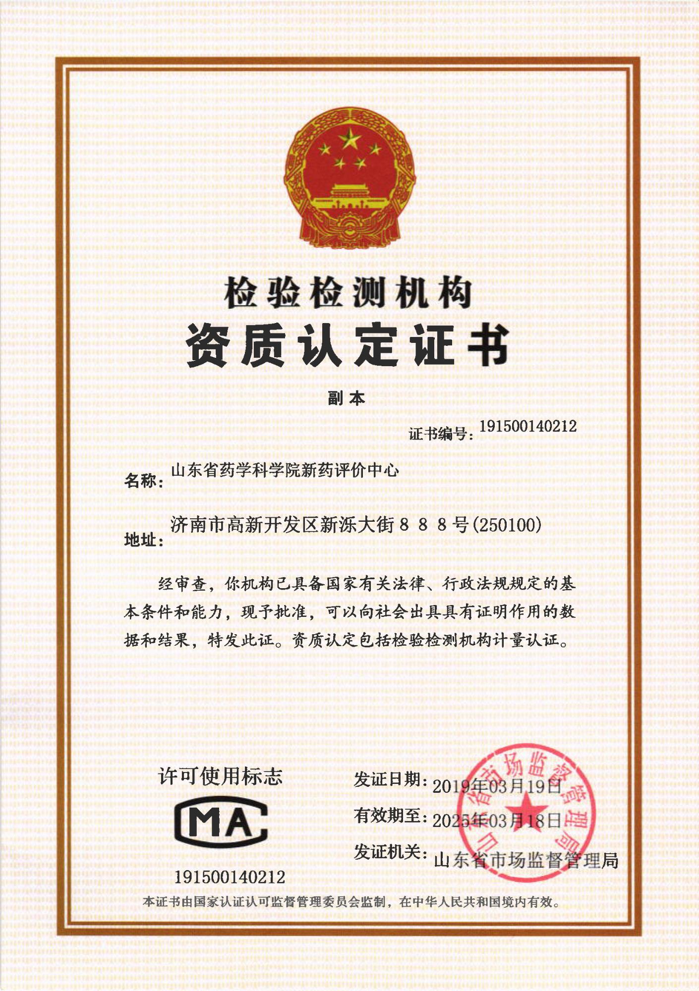 3月19日,省藥科院新藥評價中心獲得省市場監督管理局頒發的檢驗檢測機構資質認定證書(CMA資質認定)。這標志著中心成功躋身國家認可實驗室行列,并有資質及能力承接保健食品毒理及功效相關檢驗檢測項目。