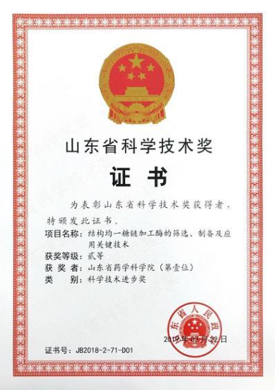 4月30日,山東省藥學(xué)科學(xué)院(以下簡(jiǎn)稱省藥科院)和山東福瑞達(dá)醫(yī)藥集團(tuán)有限公司(以下簡(jiǎn)稱福瑞達(dá)醫(yī)藥集團(tuán))獲頒2018年度山東省科學(xué)技術(shù)進(jìn)步二等獎(jiǎng)證書(shū)。根據(jù)《山東省人民政府關(guān)于2018年度山東省科學(xué)技術(shù)獎(jiǎng)勵(lì)的決定》,省藥科院與山東大學(xué)、福瑞達(dá)醫(yī)藥集團(tuán)聯(lián)合申報(bào)的“結(jié)構(gòu)均一糖鏈加工酶的篩選、制備及應(yīng)用關(guān)鍵技術(shù)”項(xiàng)目,榮獲山東省科學(xué)技術(shù)進(jìn)步二等獎(jiǎng)(省藥科院列第一位、福瑞達(dá)醫(yī)藥集團(tuán)列第三位)。項(xiàng)目完成人為藥科院生物藥物研究所凌沛學(xué)、劉飛、張曉元等研究團(tuán)隊(duì)成員。