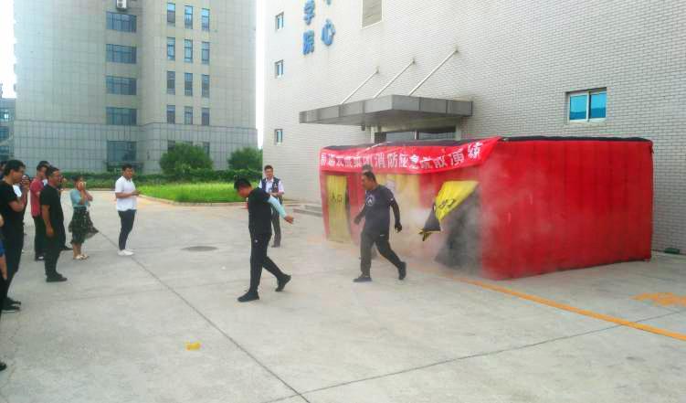 此次演練利用 “逃生帳篷”真實地模擬了火災現場環境,“逃生帳篷”內設有隔斷墻,分隔成迂回曲折的走道空間,僅設1個進口和1個出口,進出口均有遮光門簾,演練過程中帳篷內會釋放安全煙霧,真實模擬火災現場濃煙滾滾、伸手不見五指的環境。參加演練的員工3人一組,在教官的指揮下,用濕毛巾捂住口鼻,迎著濃煙進入“逃生帳篷”,隨后扶著墻壁,利用大約20秒的時間通過煙霧繚繞的漆黑走道,順利從出口“逃生”。