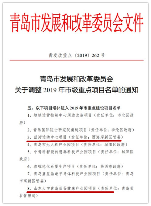 9月20日,青島市發(fā)改委發(fā)布了《關(guān)于調(diào)整2019年市級(jí)重點(diǎn)項(xiàng)目名單的通知》,其中由魯商健康產(chǎn)業(yè)發(fā)展股份有限公司(以下簡(jiǎn)稱魯商發(fā)展)開(kāi)發(fā)打造的兩個(gè)項(xiàng)目被增補(bǔ)進(jìn)入2019年青島市重點(diǎn)建設(shè)項(xiàng)目名單,分別是藍(lán)灣運(yùn)動(dòng)中心項(xiàng)目和山東大學(xué)青島藍(lán)谷健康產(chǎn)業(yè)園項(xiàng)目。青島市重點(diǎn)項(xiàng)目將在用地、資金、審批等方面獲得政策支持。