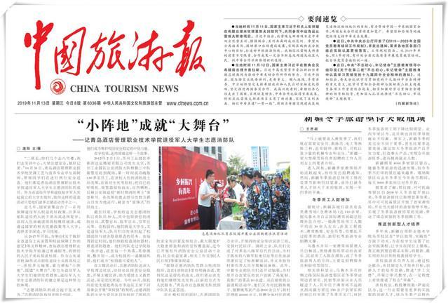 11月13日,《中國旅游報(bào)》在第四版以《“小陣地”成就“大舞臺(tái)”——記青島酒店管理職業(yè)技術(shù)學(xué)院退役軍人大學(xué)生志愿消防隊(duì)》為題,大篇幅報(bào)道了學(xué)院積極響應(yīng)《關(guān)于做好全省退役士兵安置和權(quán)益保障工作的意見》等文件精神,多元施策,著力耕耘“小陣地”,搭建“大舞臺(tái)”,努力為退役軍人大學(xué)生們提供優(yōu)質(zhì)載體,切實(shí)取得良好實(shí)效的情況。全文如下: