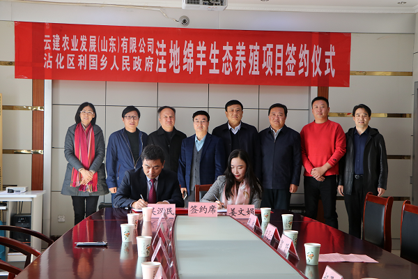 在省商業集團有限公司(以下簡稱魯商集團)宣傳統戰群團部副部長張宗國,沾化區人大常委會副主任楊勇章、副區長韓炳輝的共同見證下,云建農業發展(山東)有限公司與沾化區利國鄉政府就“洼地綿羊生態養殖項目”進行簽約。