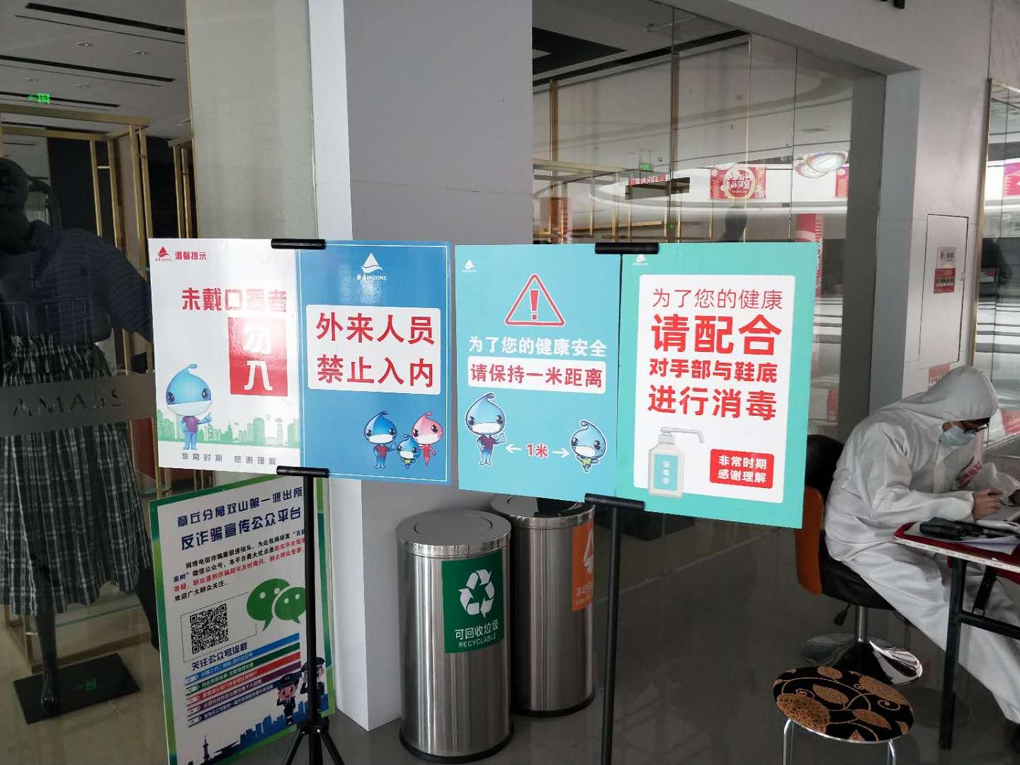 在疫情大規(guī)模暴發(fā)之前,章丘和諧廣場總經(jīng)理王俊鵬便敏銳意識到,門店作為當(dāng)?shù)氐貥?biāo)建筑,每天客流4萬多人,人員密集度高,必須提前做好防護(hù)準(zhǔn)備和宣傳。