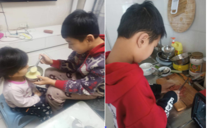 這個11歲的“男子漢”主動承擔起了做飯、照顧妹妹的重擔。菜刀對他來說還有些重,一不小心會切到手;炒菜掌握不好,熱油濺到臉上;煎雞蛋沒控好火侯,把蛋煎生了;妹妹會哭,還不易哄……但是,這個勇敢的男孩一點點承擔起來。