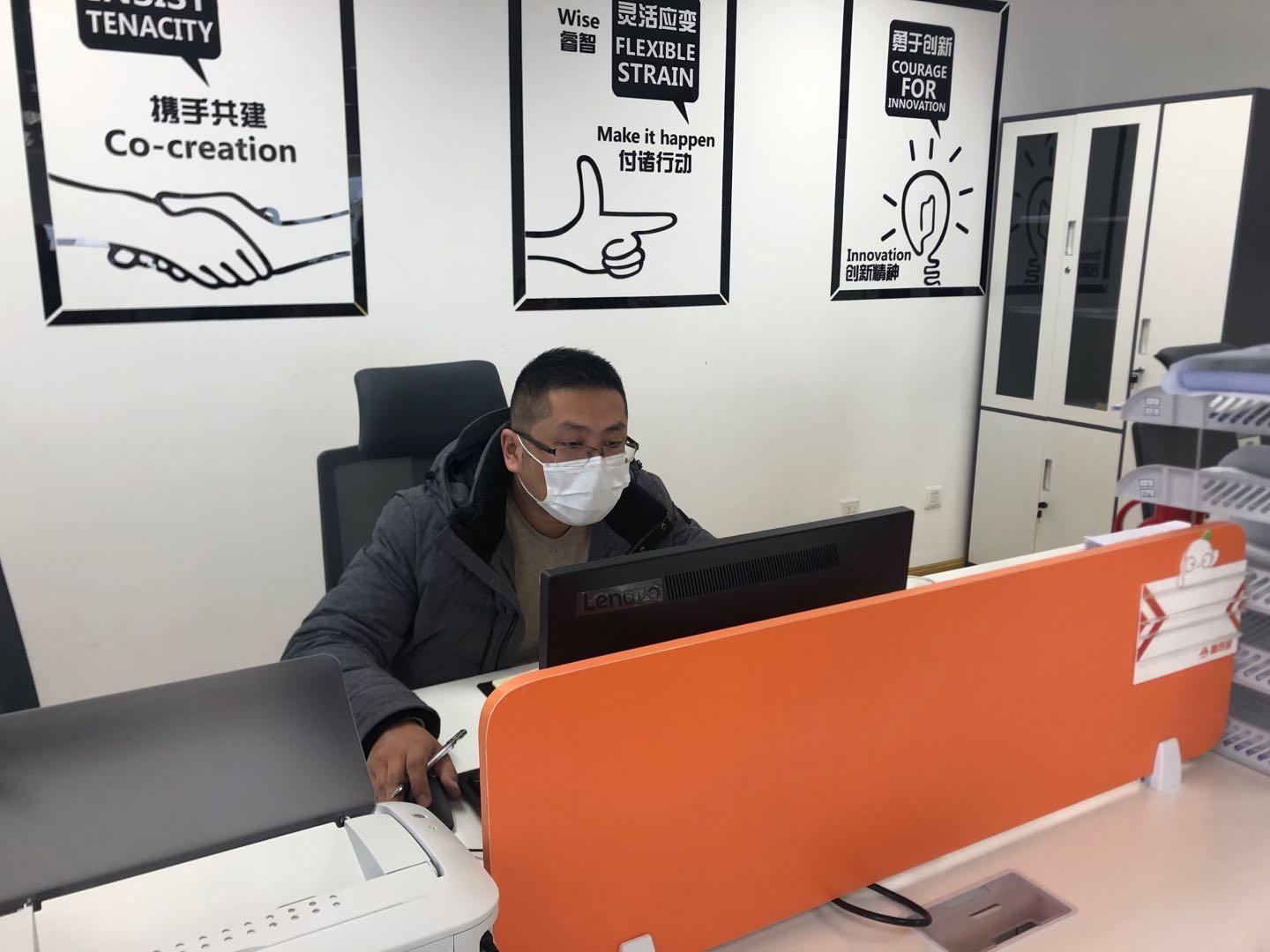 晚上8點多了,綜合管理部孫健依然還在辦公室“敲電腦”。作為兩個娃的爸爸,他放棄假期團聚,在這一特殊時期提前到崗備“戰”。自疫情發生以來,80后的孫健將魯商通疫情防控保障工作做得有聲有色。在小伙伴們集體復工前一周,他東奔西跑買來了消毒液和消毒酒精。隨后又千方百計多方聯系,找到口罩廠家資源,儲備了一批醫療防護口罩。