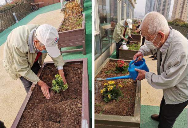 魯商福瑞達(dá)國(guó)際頤養(yǎng)中心的長(zhǎng)者代表們則到頤養(yǎng)中心六樓的室外活動(dòng)區(qū),在“空中花園”里種下一束束長(zhǎng)壽花,祝福天下長(zhǎng)者身體健康。